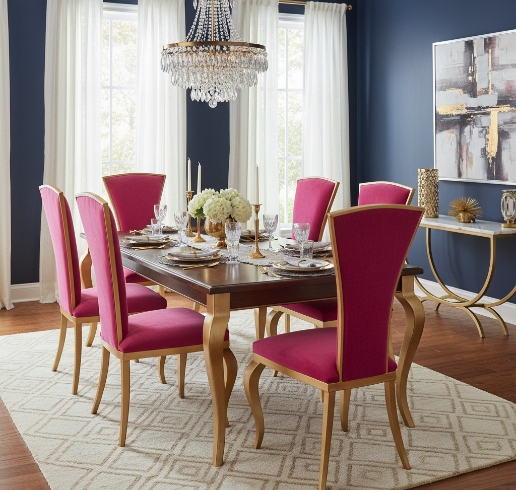 “Opulent Fuchsia Velvet & Gold Dining Chair – Royal Elegance Collection”