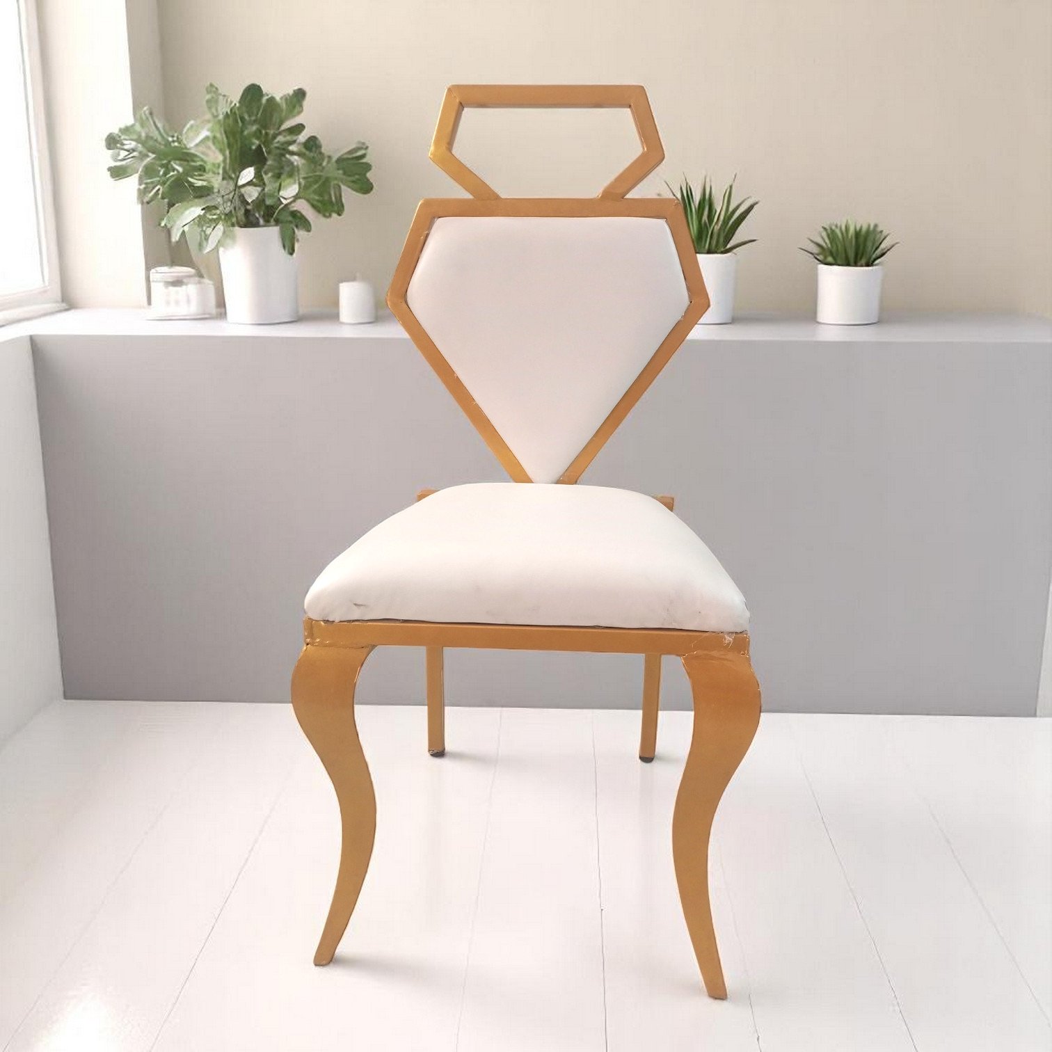 - Distinctive Diamond Back Design: The unique, geometric diamond-shaped backrest, finished in a lustrous gold, provides an eye-catching focal point that exudes glamour and modern elegance.