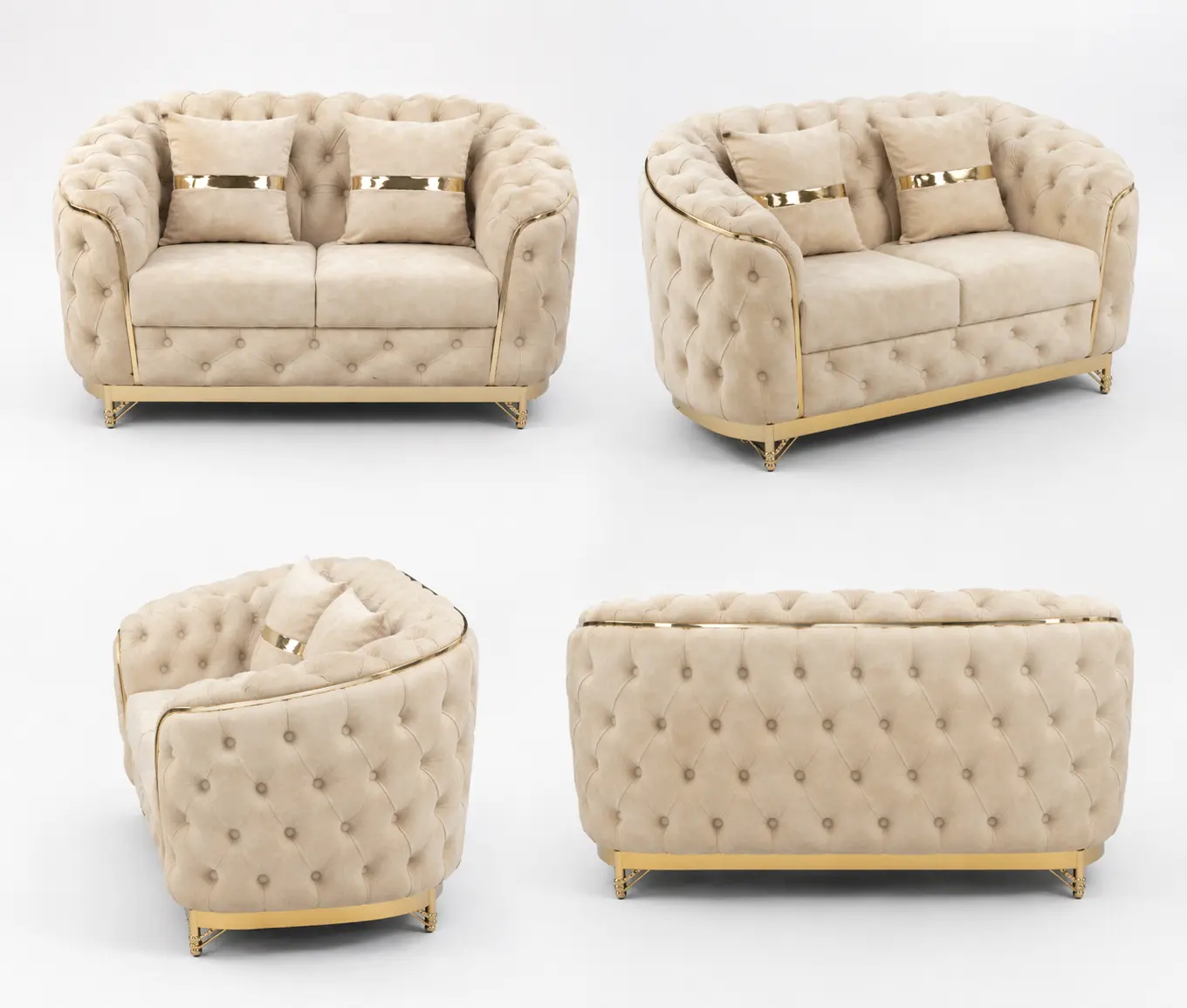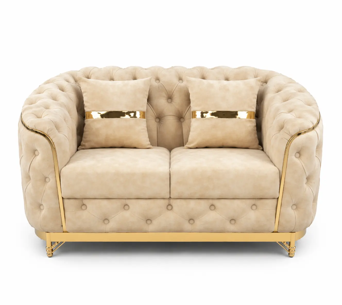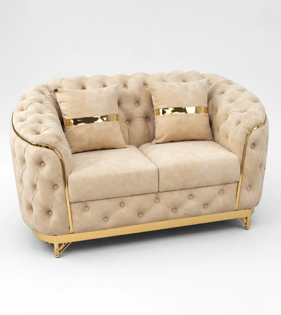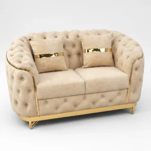 Iska gold plated stainless steel base aur side lining isko modern aur royal finish deta hai, jo stage decoration, bride-groom seating, VIP lounge aur premium event setups ke liye perfect hai.