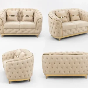 Sofa ka strong wooden frame aur heavy-duty cushioning long-lasting comfort provide karta hai. Isme use hua premium Mosha velvet fabric soft touch ke saath luxurious feel deta hai, jo lighting me aur bhi attractive dikhta hai.