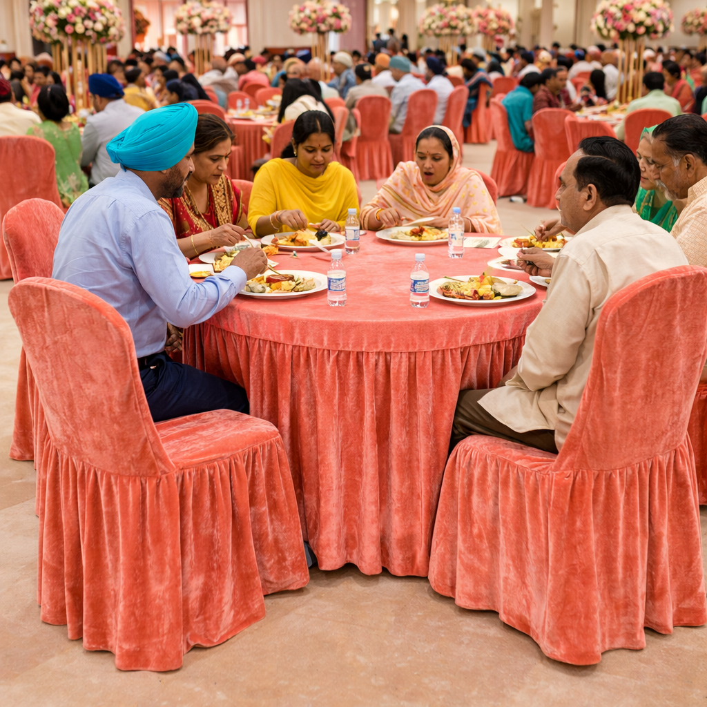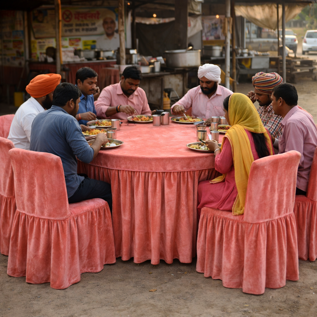 Round Velvet Table Cover with Pleated Skirt (190 GSM) – Gajari आपके इवेंट सेटअप को प्रीमियम लुक देने के लिए बनाया गया है। यह 190 GSM वेलवेट फैब्रिक में आता है और राउंड टॉप के साथ चारों तरफ pleated skirt फिनिश देता है। फैब्रिक का फॉल और शेडिंग (velvet shine) फोटो के अनुसार दिखेगा।