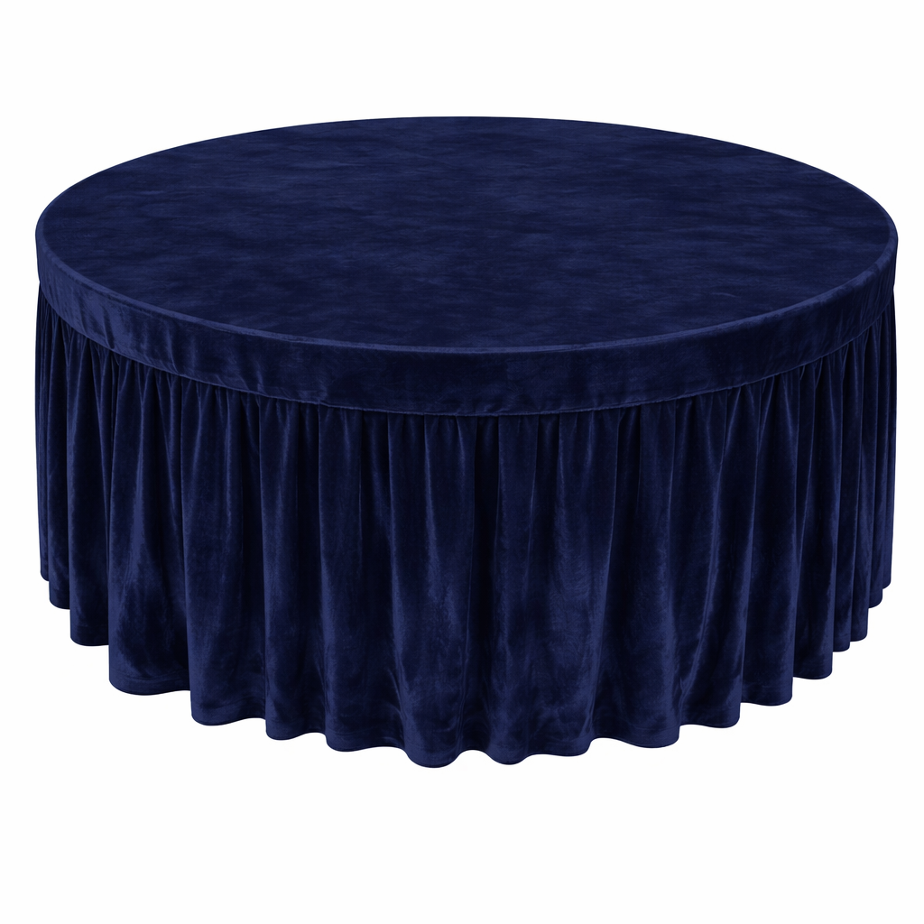 Round Velvet Table Cover with Pleated Skirt (190 GSM) – Navy Blue