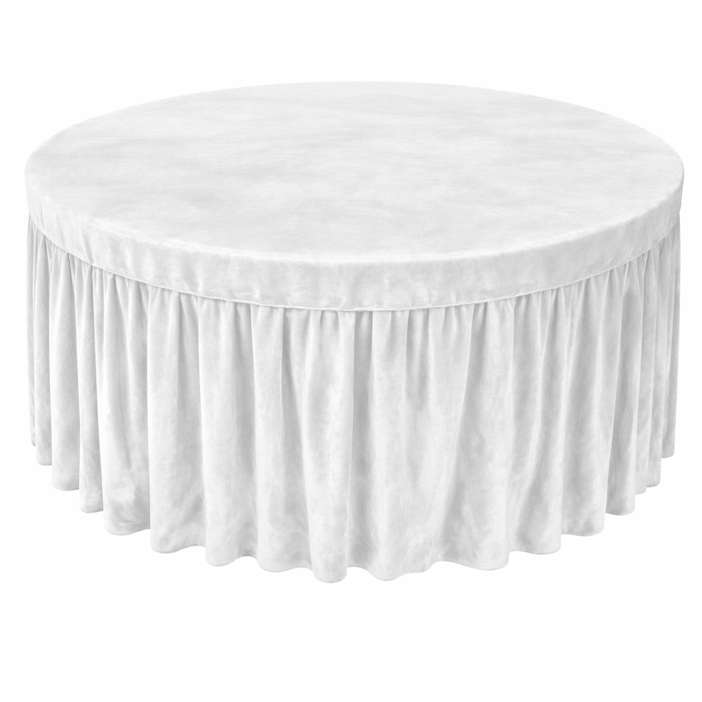 Round Velvet Table Cover with Pleated Skirt (190 GSM) – White