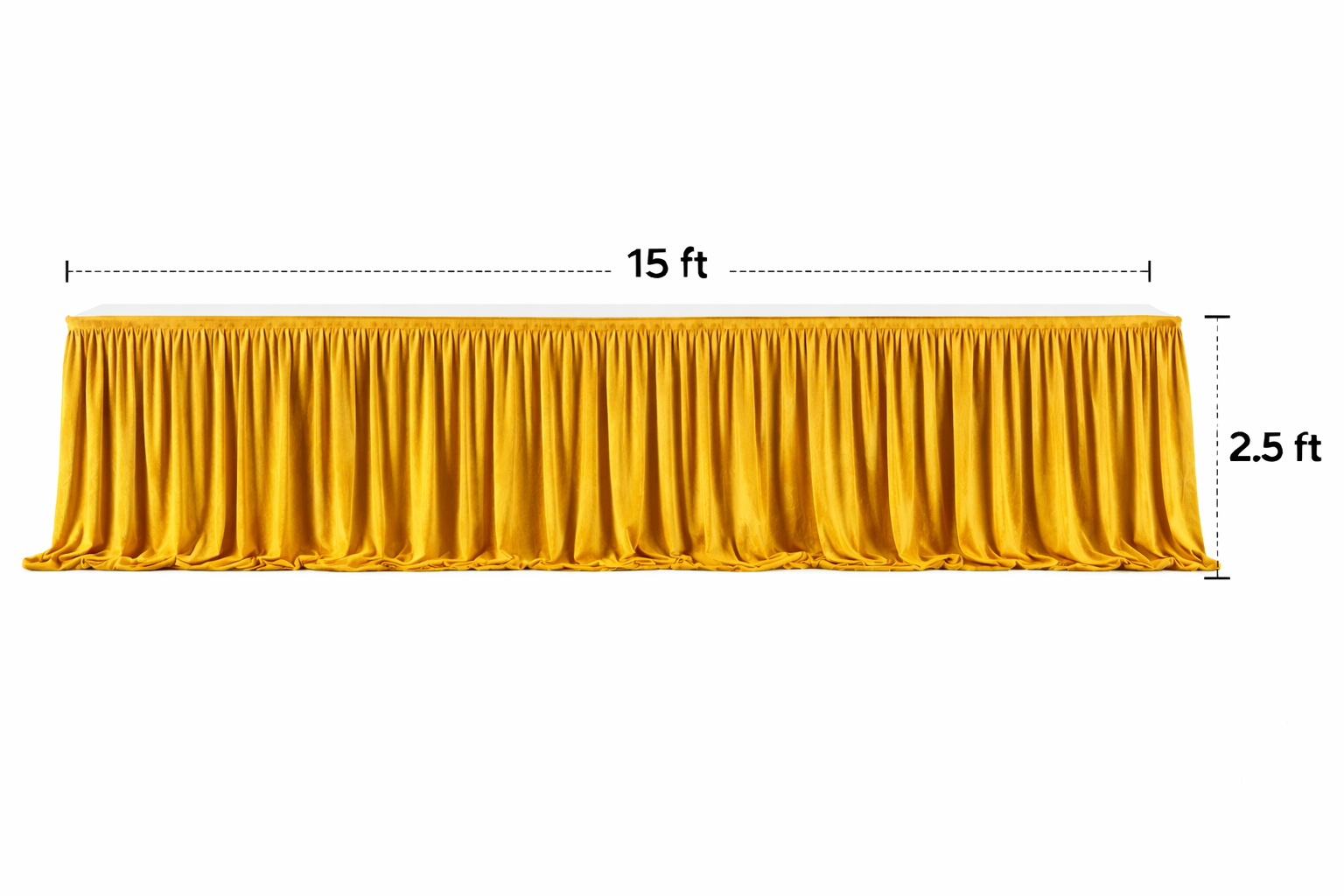 This 15ft long and 2.5ft height front velvet sider is specially stitched for professional event decoration use. The fabric gives a rich, soft mink velvet feel with heavy fall and elegant pleats.