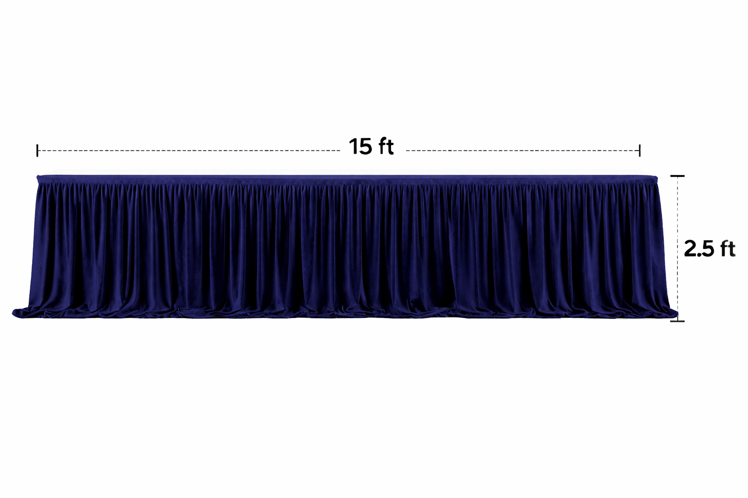 This 15ft long and 2.5ft height front velvet sider is specially stitched for professional event decoration use. The fabric gives a rich, soft mink velvet feel with heavy fall and elegant pleats.
