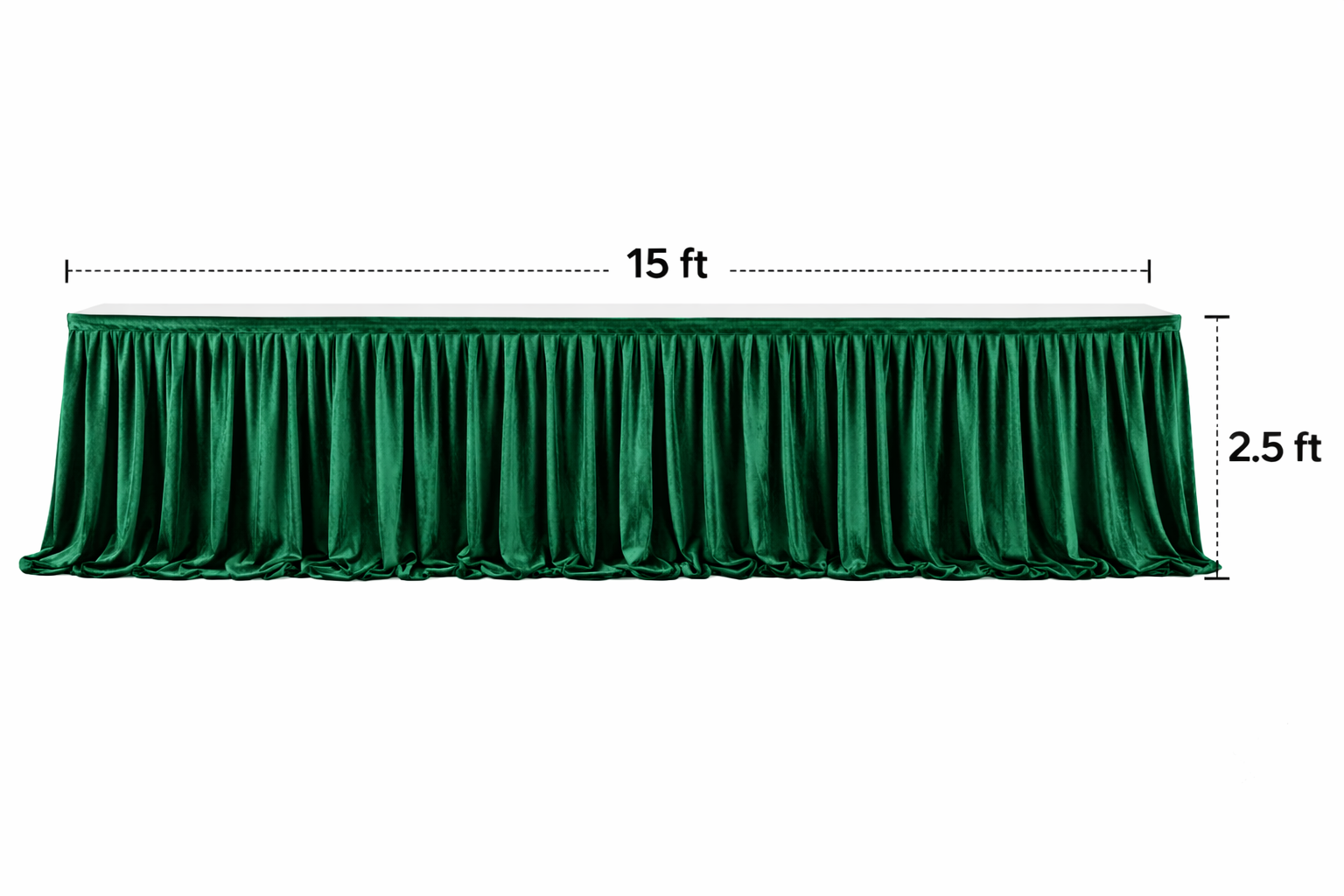 This 15ft long and 2.5ft height front velvet sider is specially stitched for professional event decoration use. The fabric gives a rich, soft mink velvet feel with heavy fall and elegant pleats.