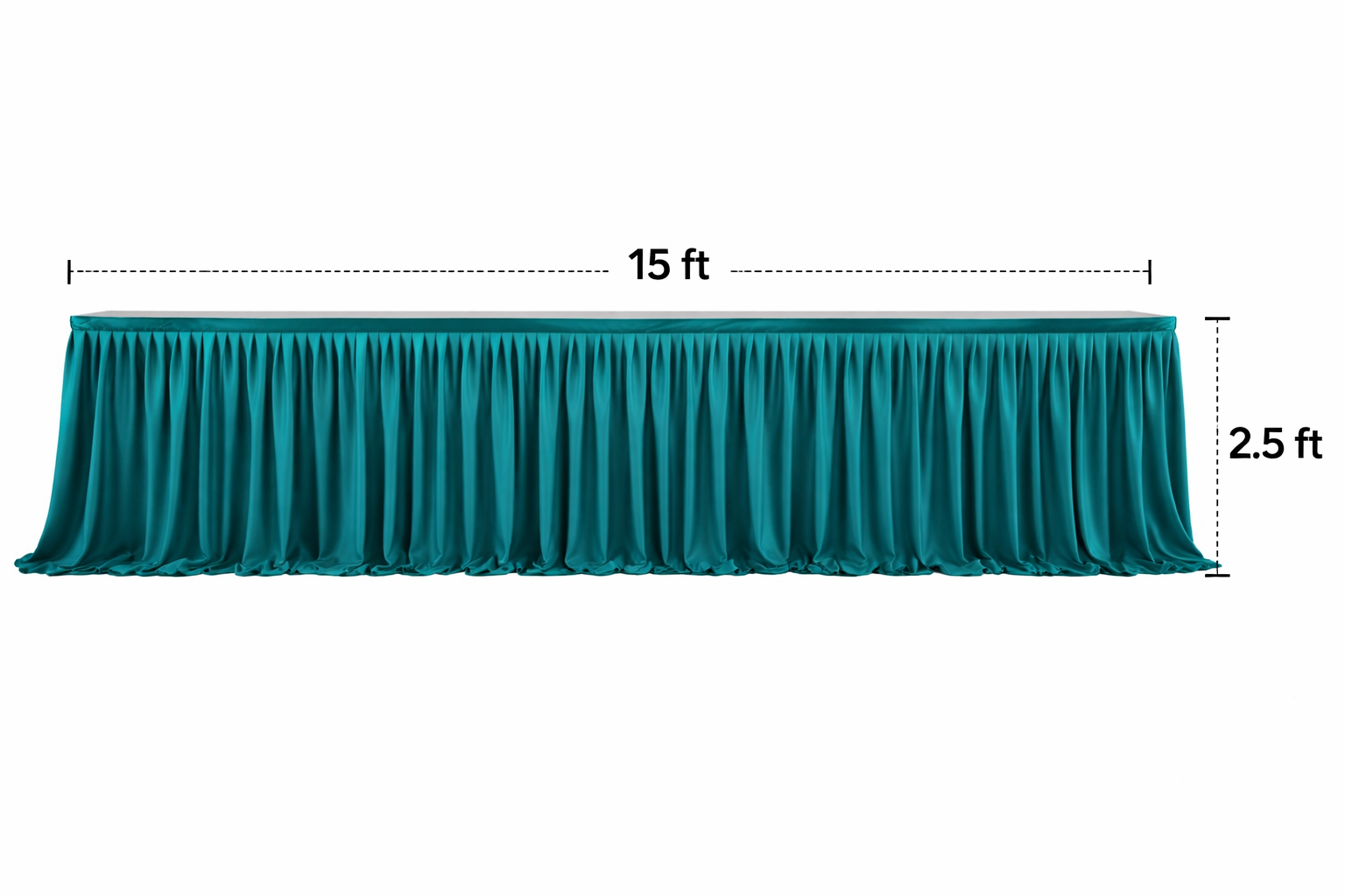 This 15ft long and 2.5ft height front velvet sider is specially stitched for professional event decoration use. The fabric gives a rich, soft mink velvet feel with heavy fall and elegant pleats.