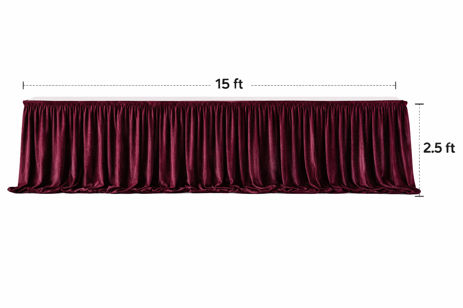 This 15ft long and 2.5ft height front velvet sider is specially stitched for professional event decoration use. The fabric gives a rich, soft mink velvet feel with heavy fall and elegant pleats.